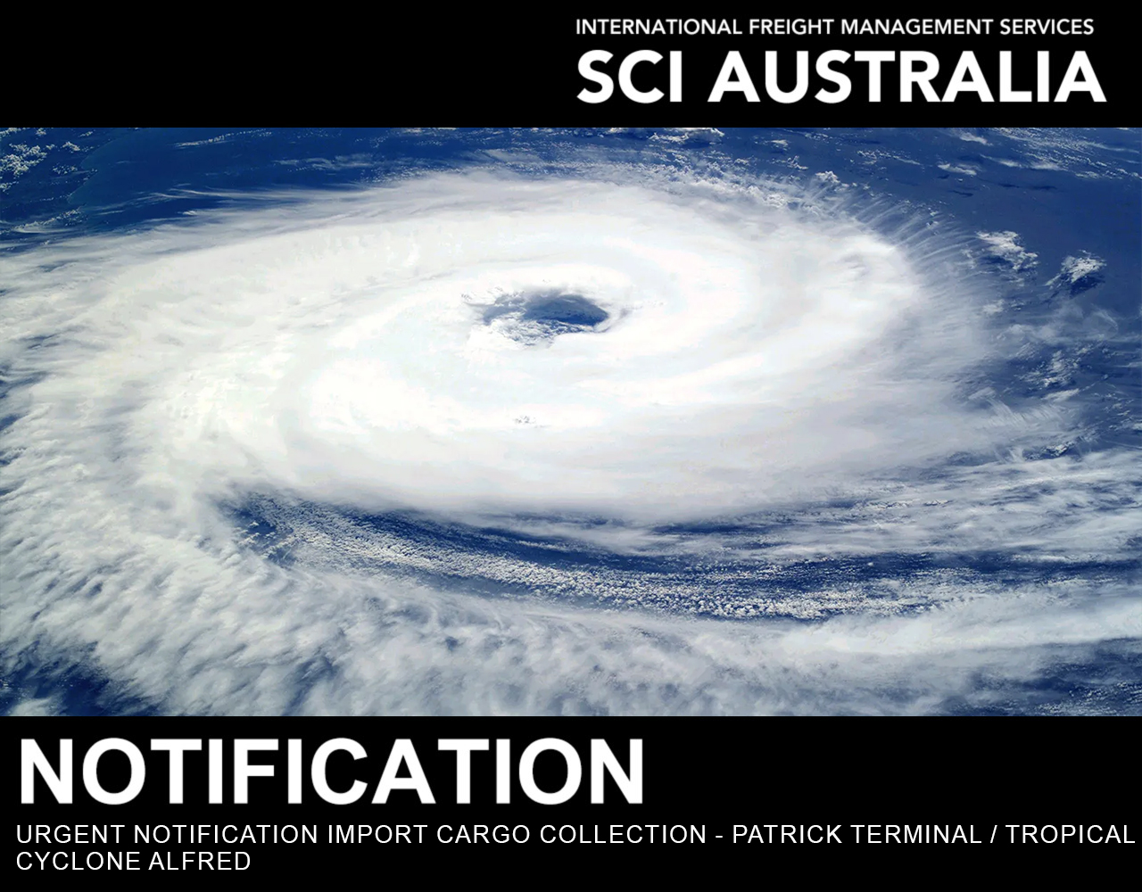 Urgent Notification Import Cargo Collection – Patrick Terminal / Tropical Cyclone Alfred