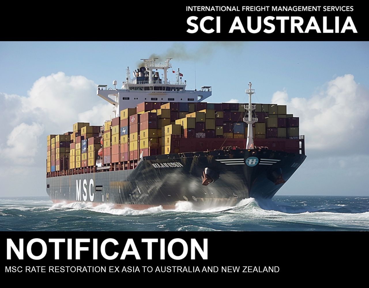 MSC have announced a rate restoration from Asia to Australia and New Zealand from 15th September