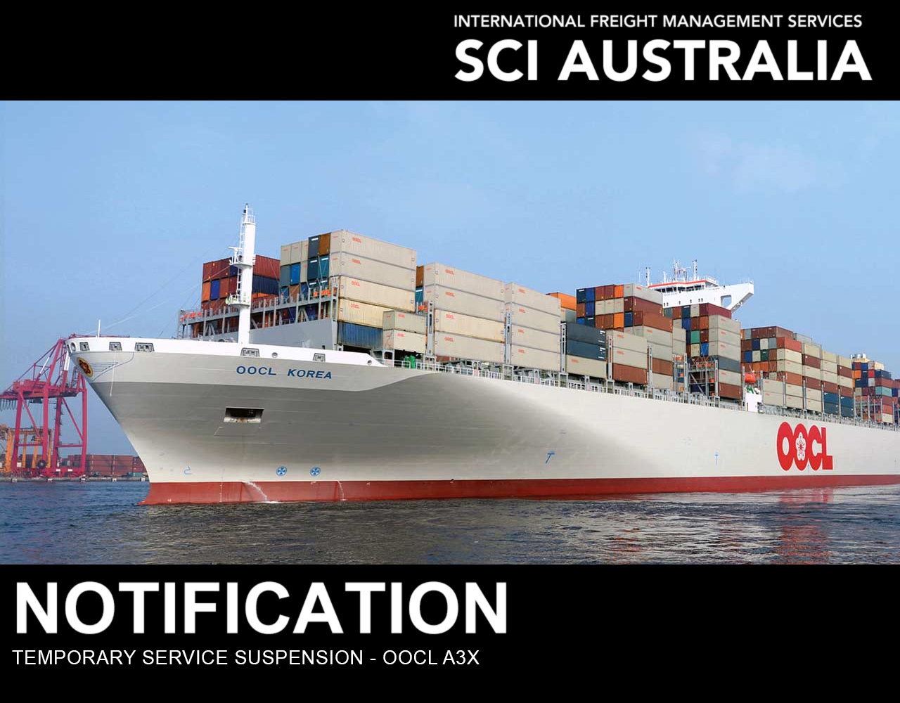 Please be advised that the OOCL A3X service will be temporarily suspended until further notice.