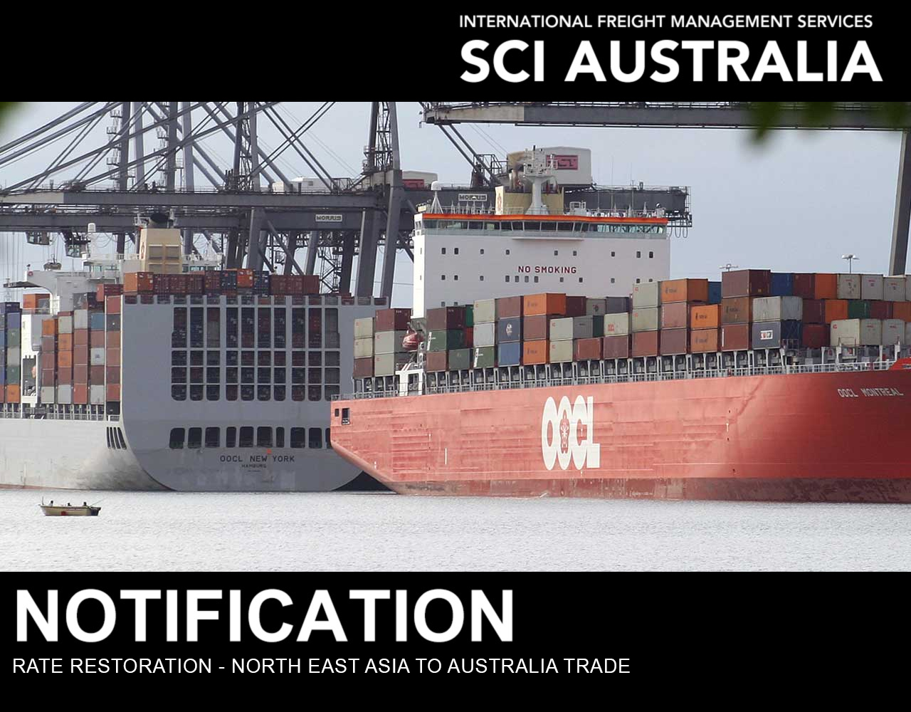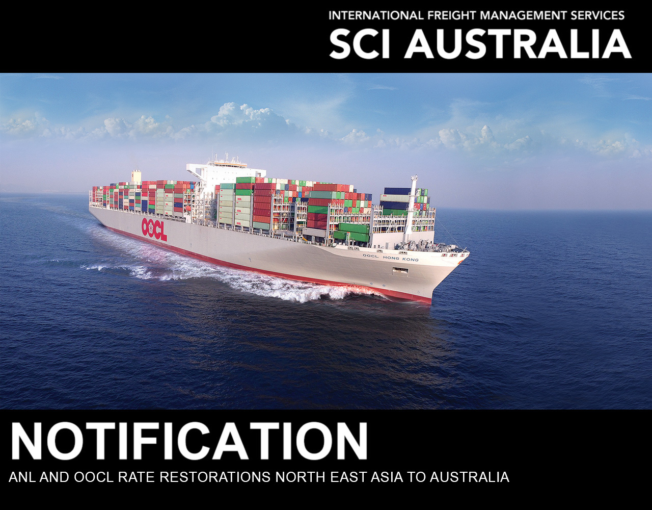 ANL and OOCL have advised that there will be a Rate Restoration of US$150 per 20′ and US$300 per 40′ from 1st of August 2023