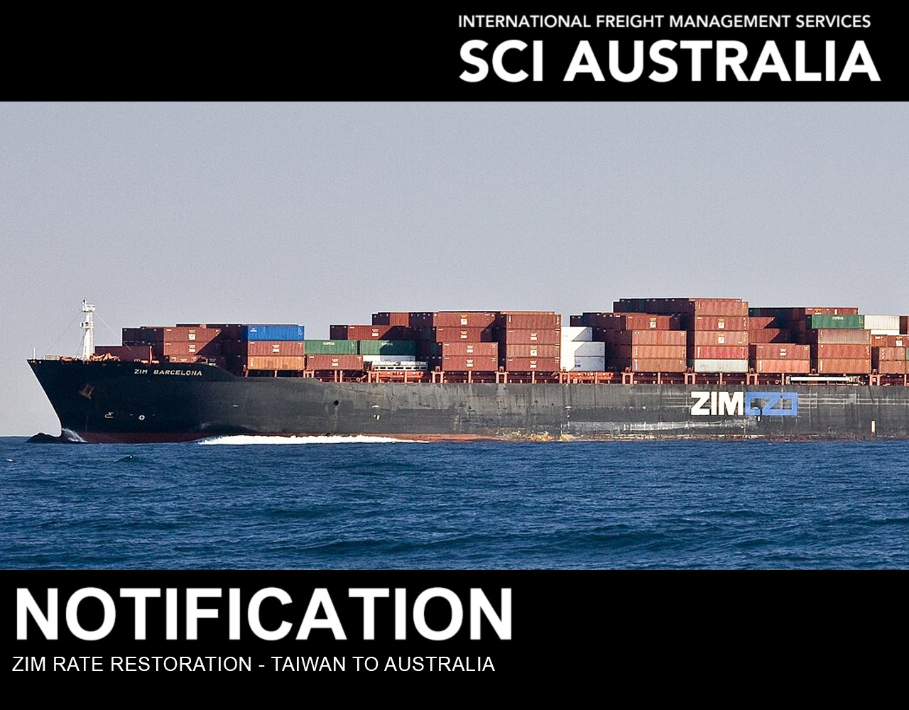 ZIM have announced a Rate Restoration for shipments from Taiwan to Australia.