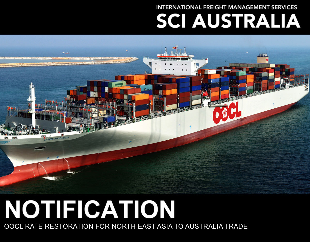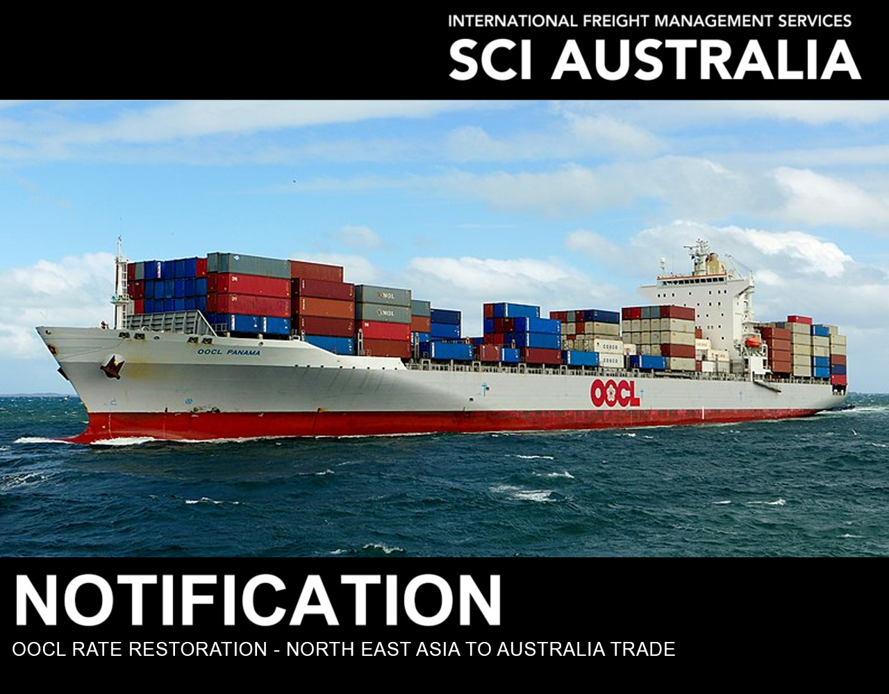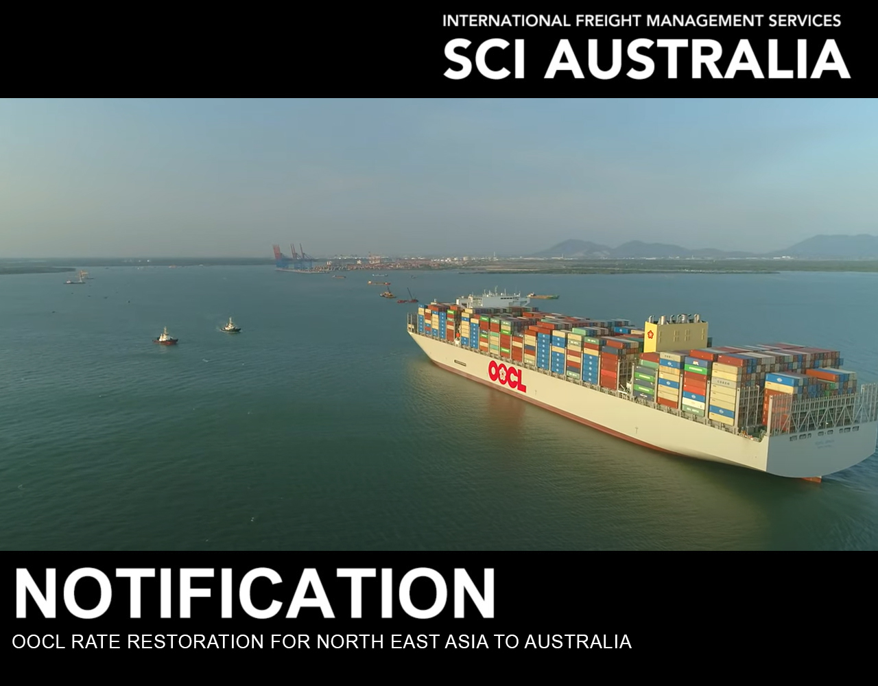 OOCL have advised that there will be a Rate Restoration of US$150 per 20′ and US$300 per 40′ from 1st of September 2023