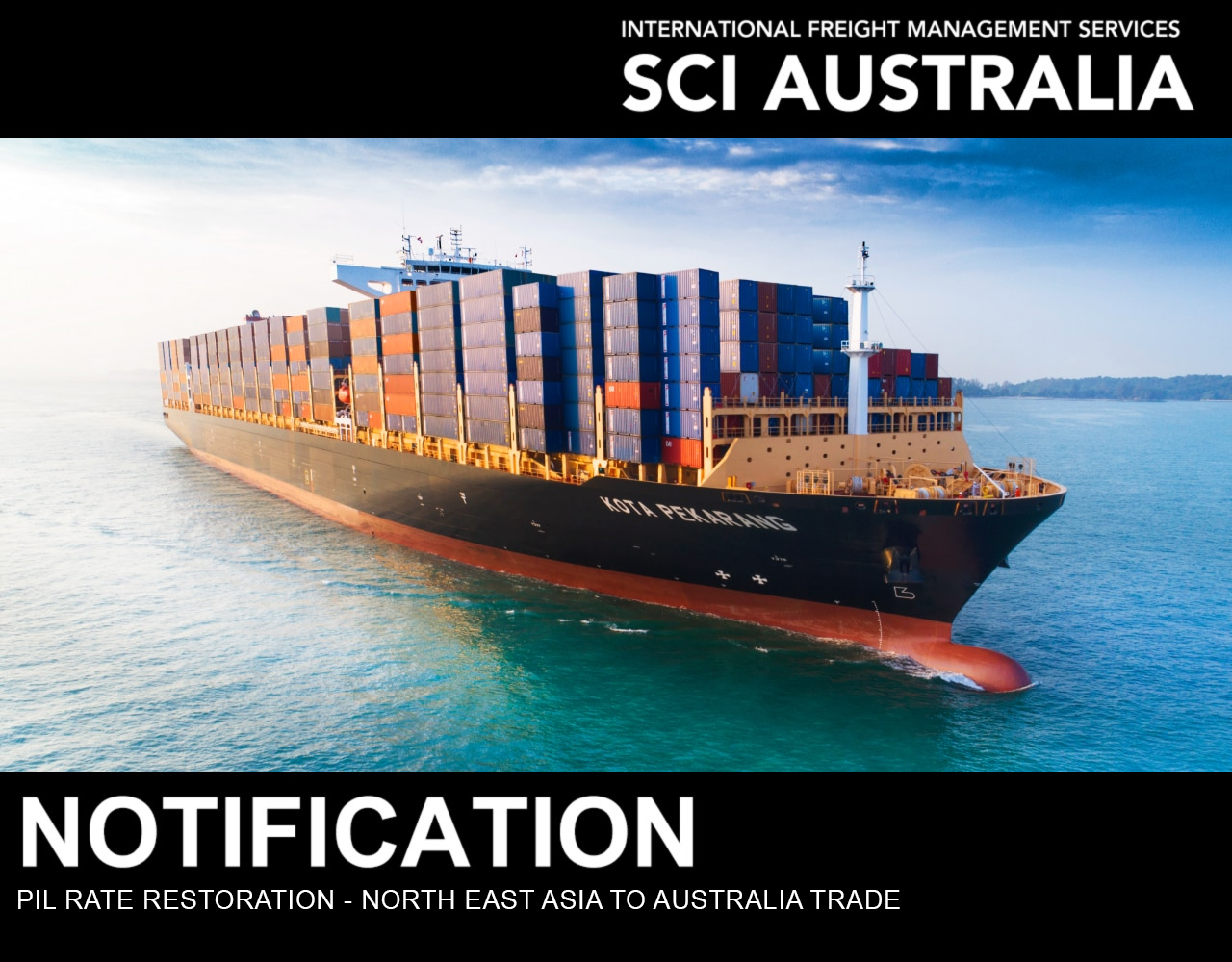 PIL have advised that there will be a Rate Restoration of US$150 per TEU from 15th of October 2023.